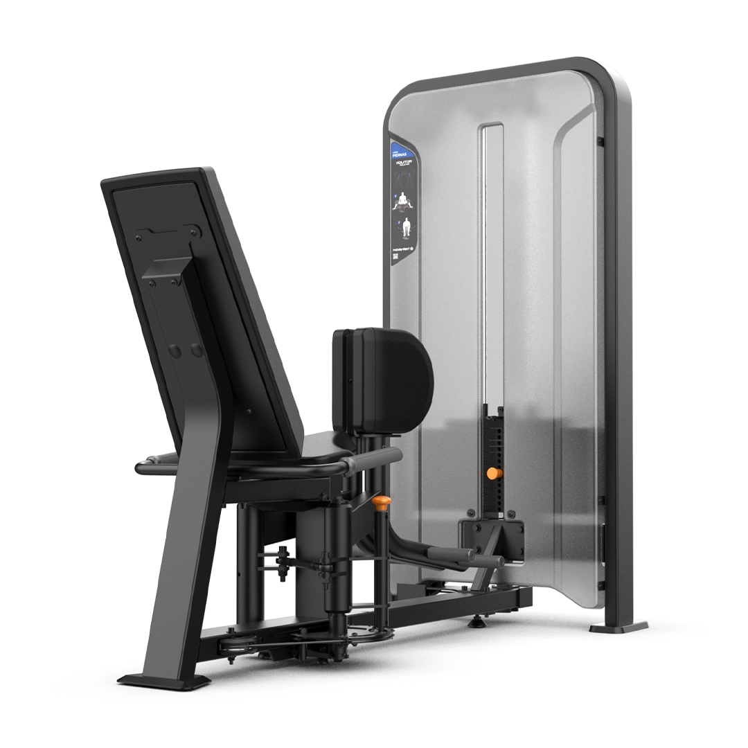 O design do equipamento é focado na ergonomia e no conforto do usuário. A estrutura robusta, fabricada em aço com solda MIG/MAG, recebe um tratamento de pintura eletrostática a pó com nove banhos para maior durabilidade e resistência à corrosão. O estofamento, de espuma de poliuretano de alta densidade e revestido em courvin de alta performance, garante o suporte ideal durante a execução dos exercícios.