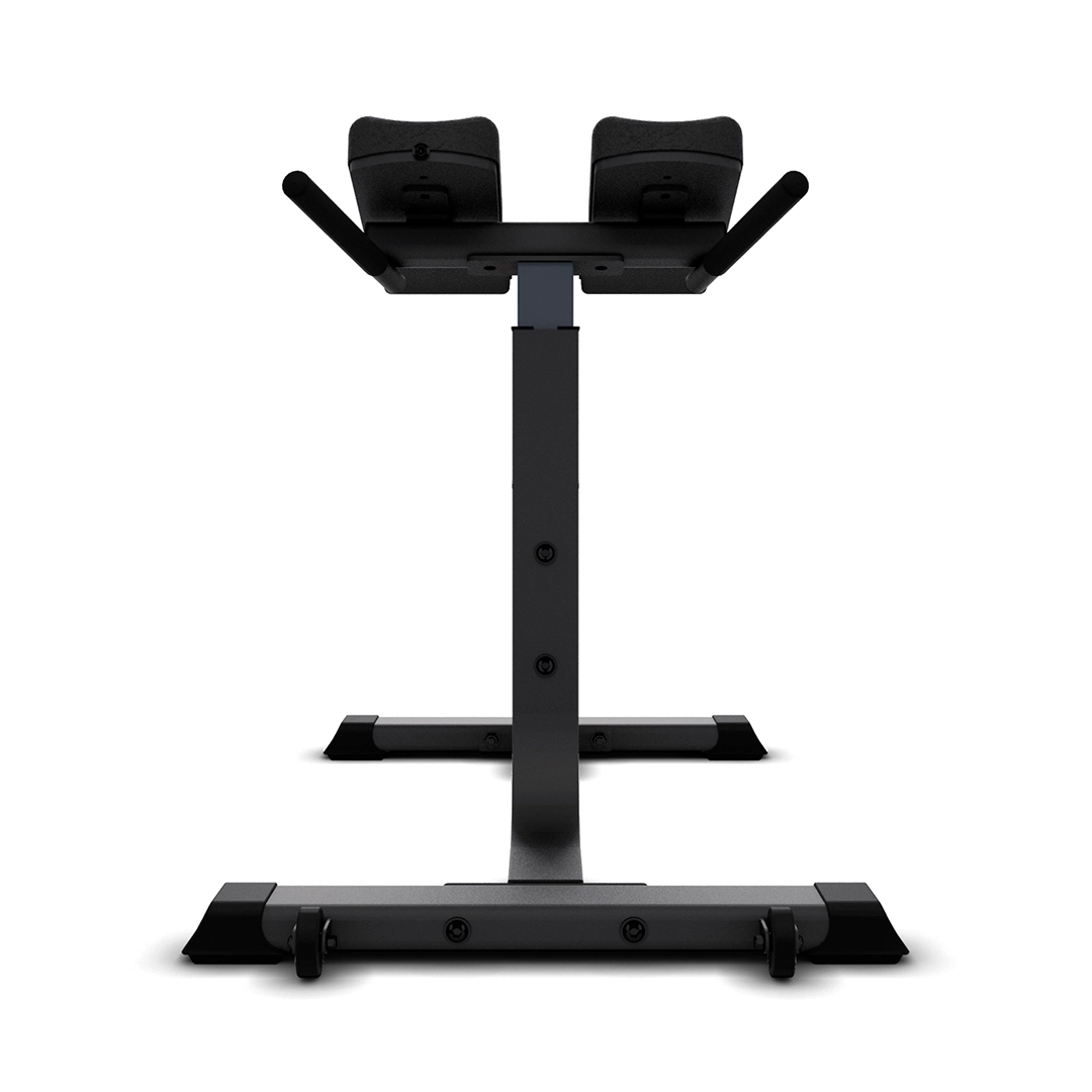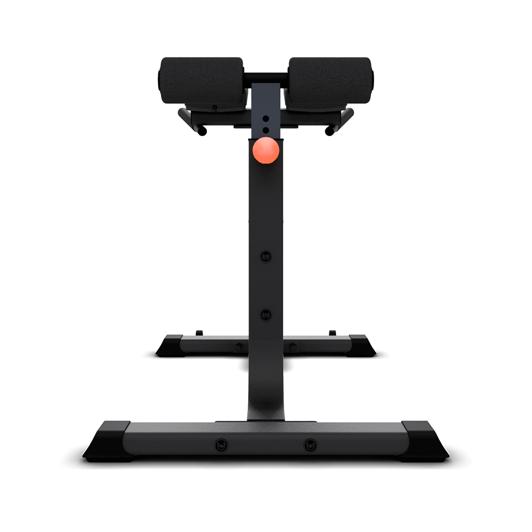 O banco é construído com uma estrutura robusta em aço com 3 mm de espessura e solda TIG/MIG, garantindo durabilidade e segurança mesmo com cargas elevadas. O estofamento em poliuretano com revestimento em courvin proporciona o conforto e a estabilidade para um treino eficaz. O grande diferencial deste modelo são os apoios para os tornozelos, que se adaptam a diferentes perfis de usuário, permitindo o posicionamento perfeito para o recrutamento muscular ideal.