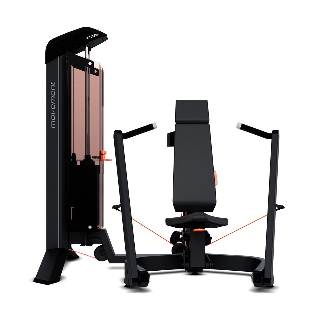 O design da linha Edge+, vencedor do prestigiado iF Design Award em 2015, atesta a combinação de beleza, ergonomia e usabilidade intuitiva. A estação conta com um assento e um encosto que pode ser ajustado em diferentes posições, o que permite variar os exercícios entre supino reto e inclinado, garantindo maior flexibilidade no treino. A bateria de peso de 115 kg, com um incremento de carga de 2,5 kg, é ideal para a progressão do treino.